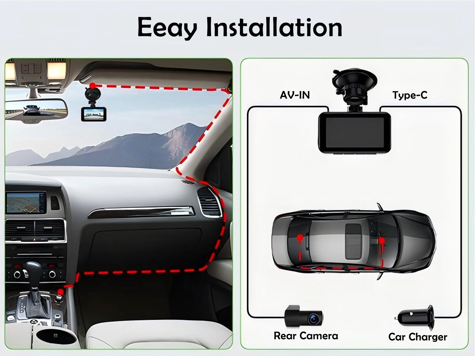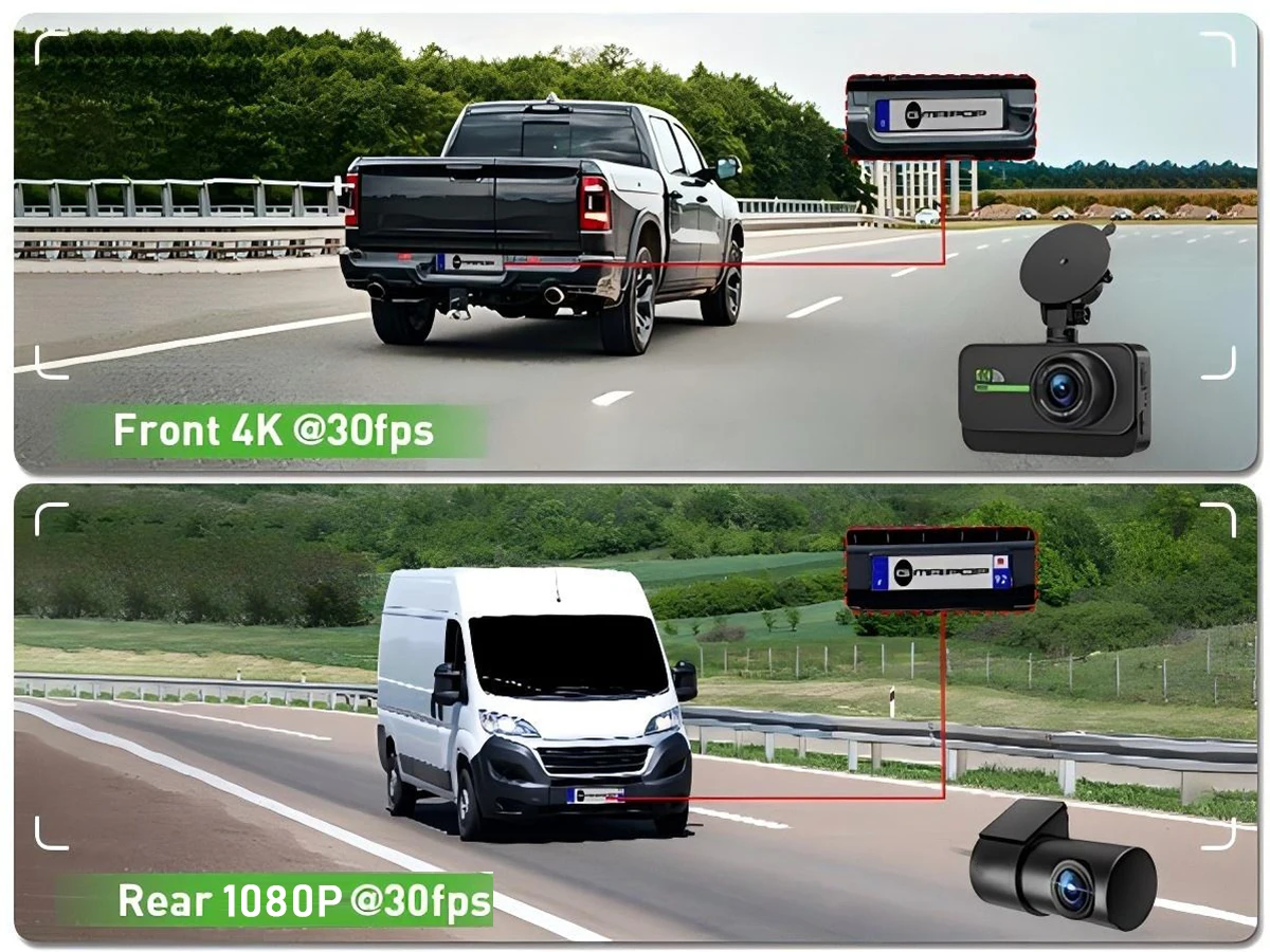 4K داش كام للسيارات كاميرا سيارة داش كام واي فاي كاميرا للسيارة الأمامية والخلفية داش كاميرا صندوق أسود 24H مسجل وضع وقوف السيارات