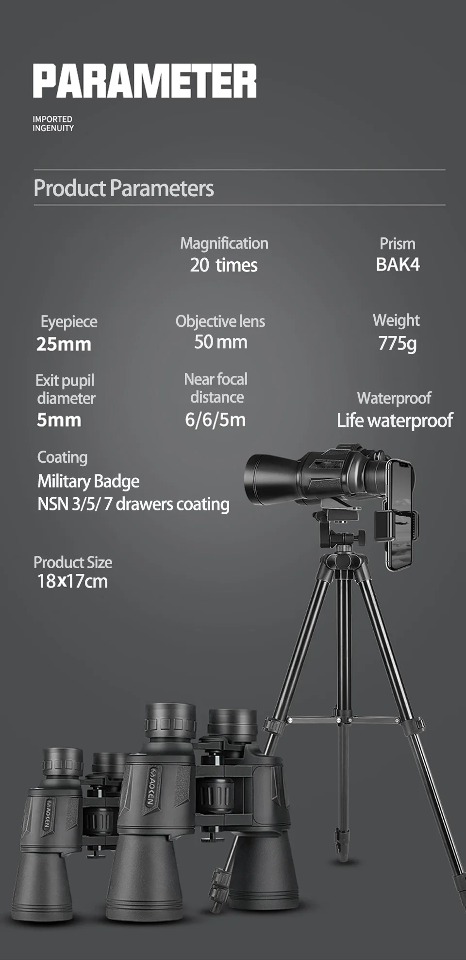 50000 متر عسكري ألماني 20X50 تكبير HD BAK4-Prism مناظير قوية طويلة المدى تلسكوب احترافي للتخييم في الهواء الطلق والسفر